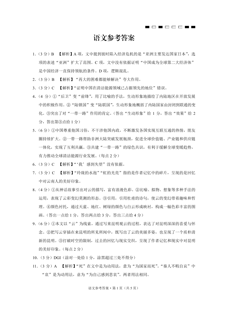 云南师范大学附属中学2024届高三上学期高考适应性月考卷(六)语文答案