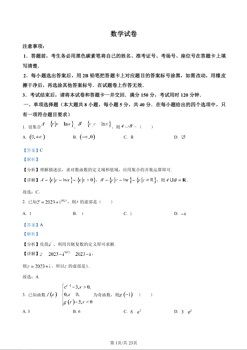 云南师范大学附属中学2024届高三上学期高考适应性月考卷(六)数学(精品解析版)