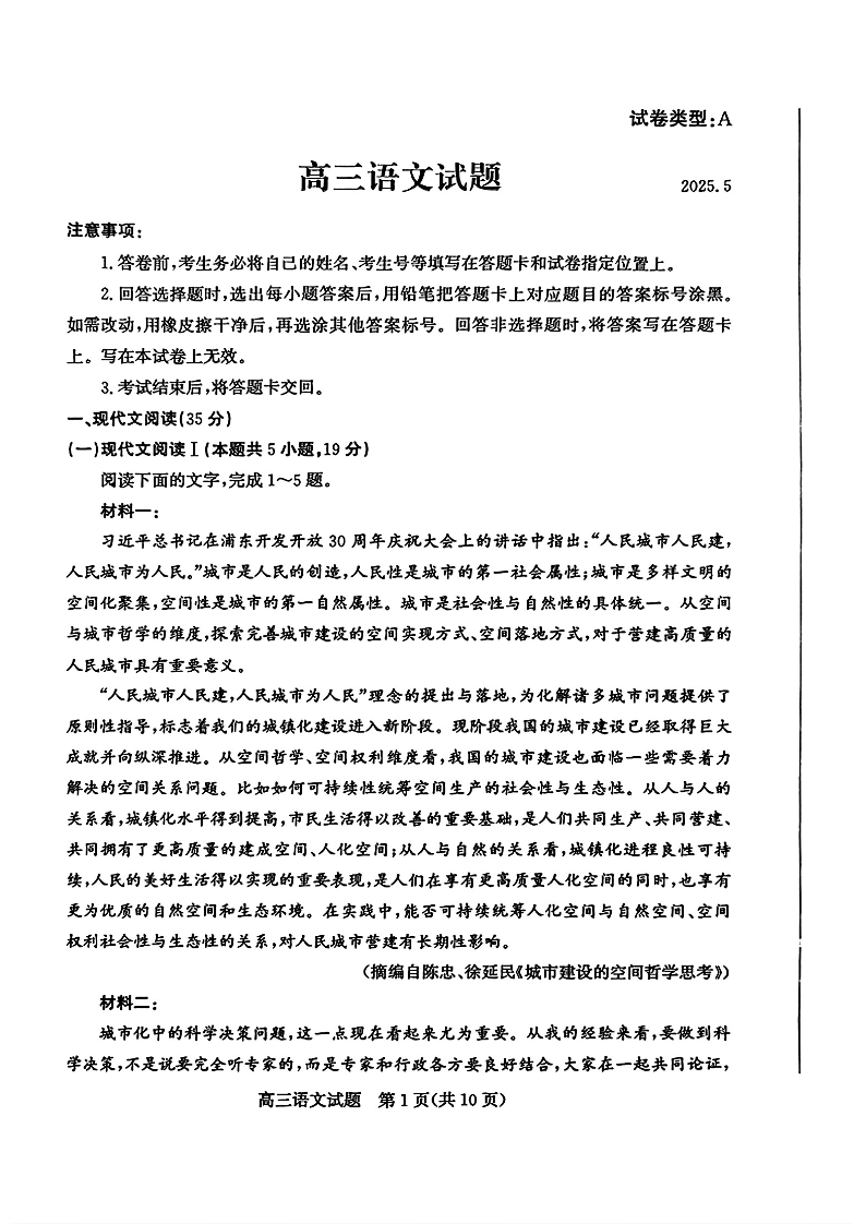 山东省滨州市2025届高三下学期第二次模拟考试语文
