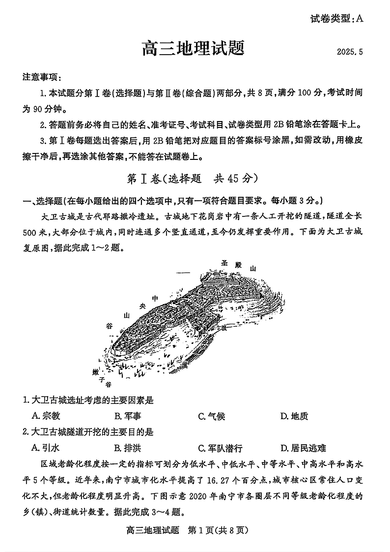山东省滨州市2025届高三下学期第二次模拟考试地理
