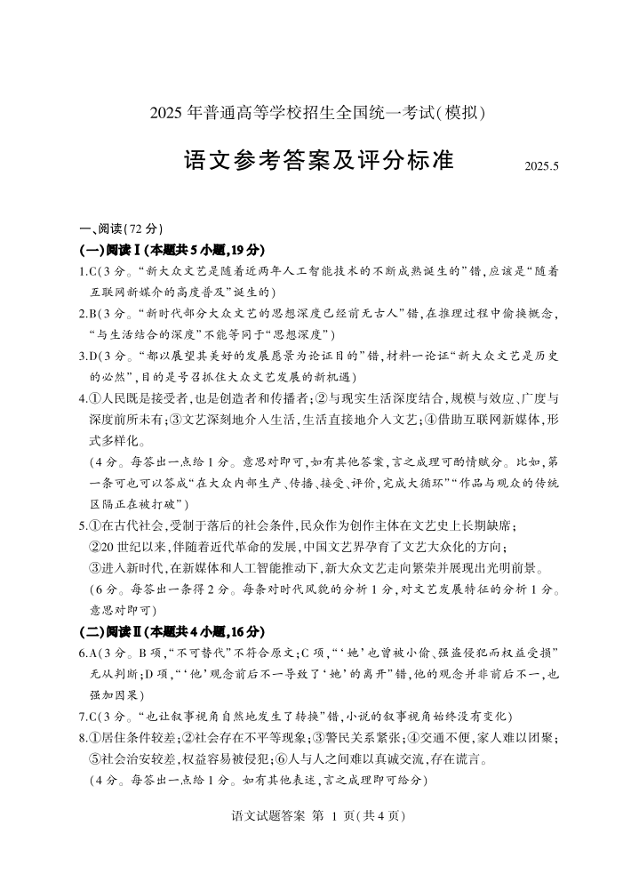 山东省临沂市2025届5月高考模拟考试(二模)语文答案