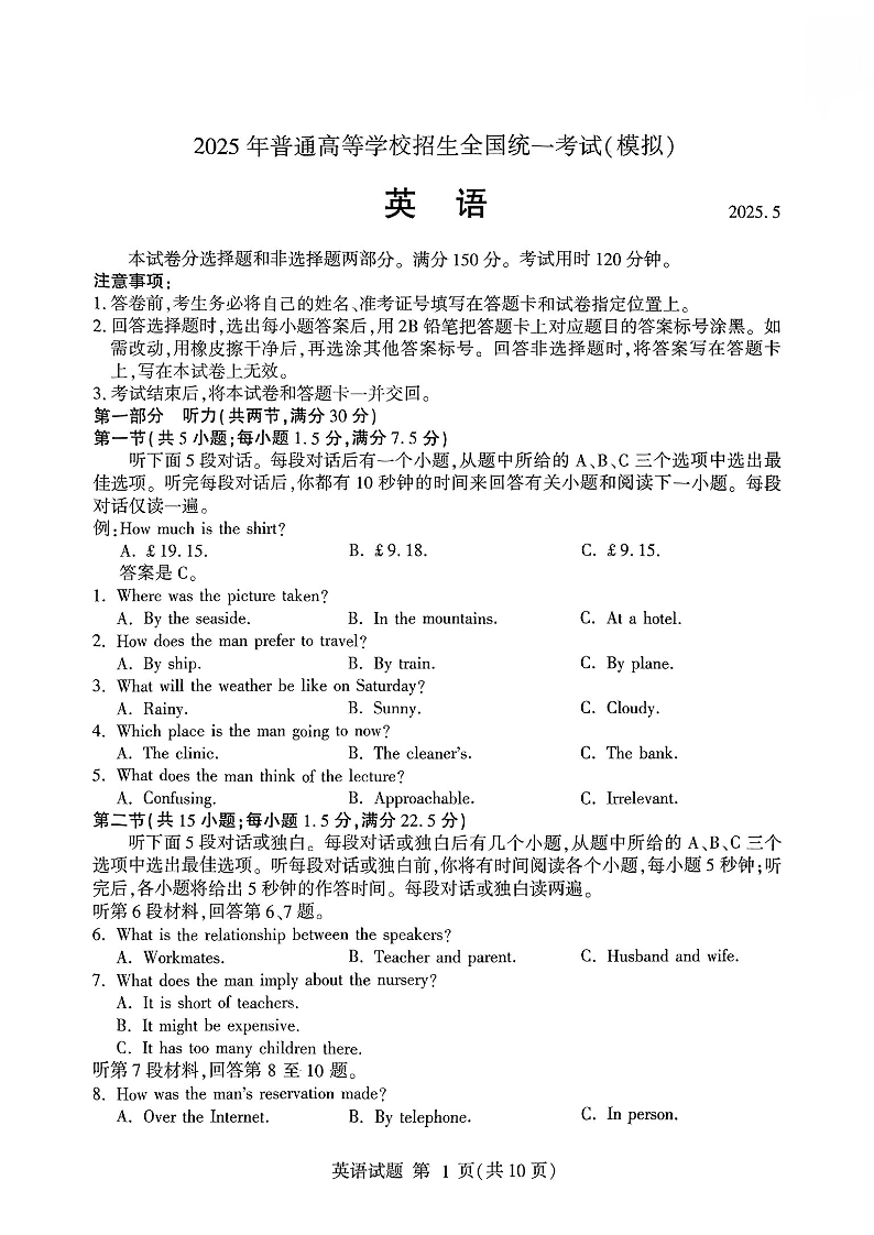山东省临沂市2025届5月高考模拟考试(二模)英语