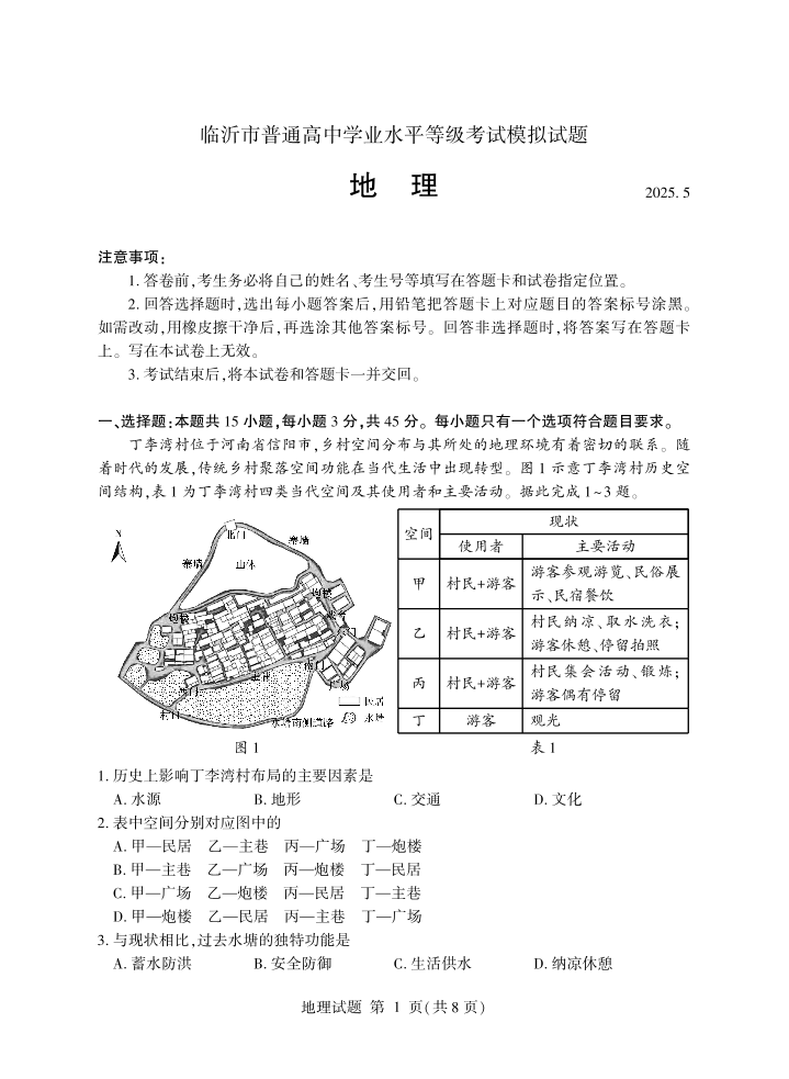山东省临沂市2025届5月高考模拟考试(二模)地理