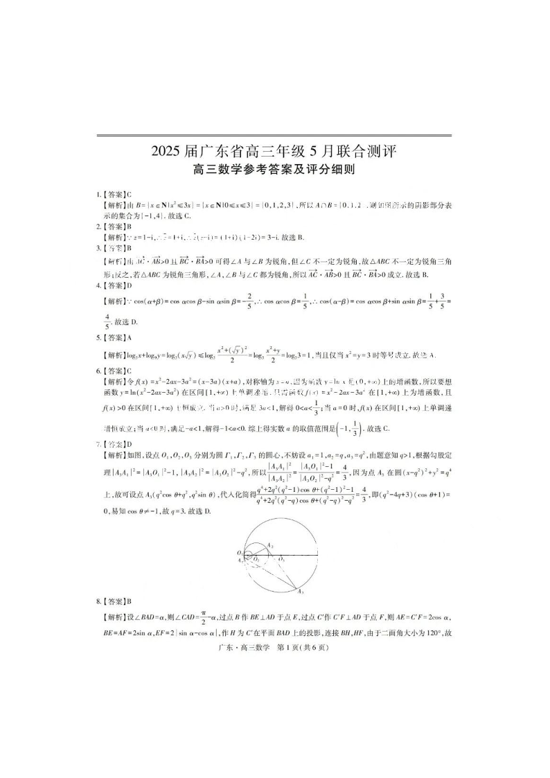 广东省上进联考2025届高三5月联合测评数学答案