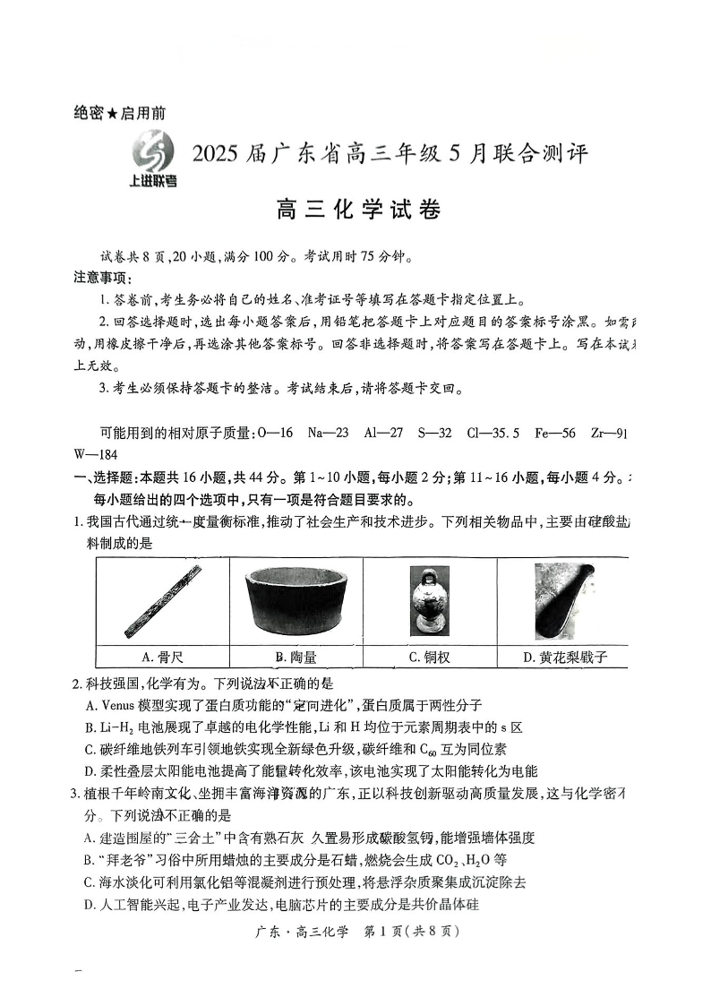 广东省上进联考2025届高三5月联合测评化学