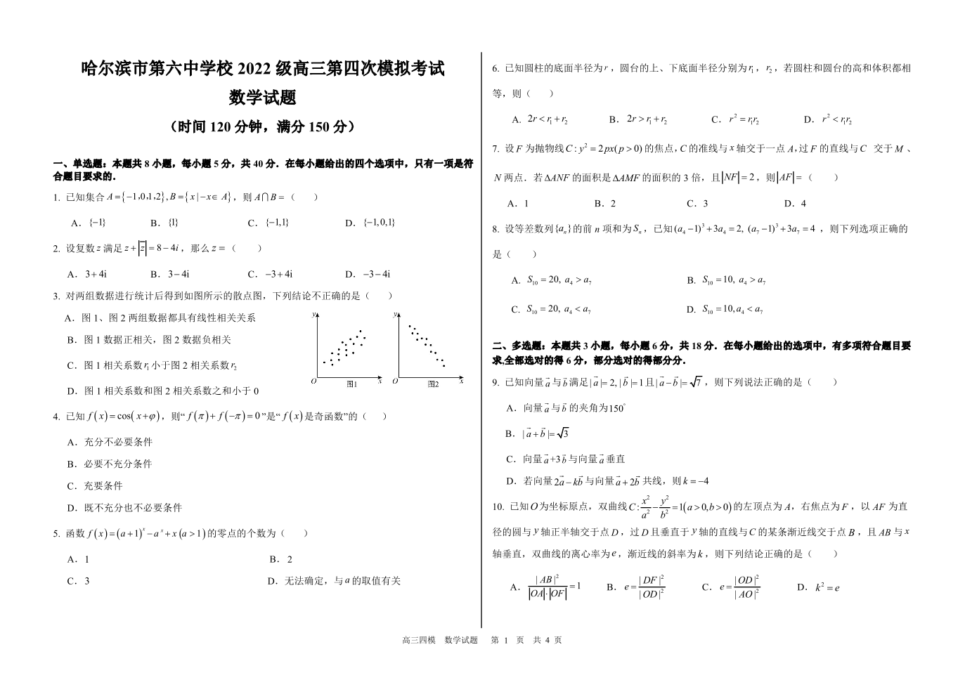 黑龙江省哈尔滨市第六中学2025届高三下学期四模数学