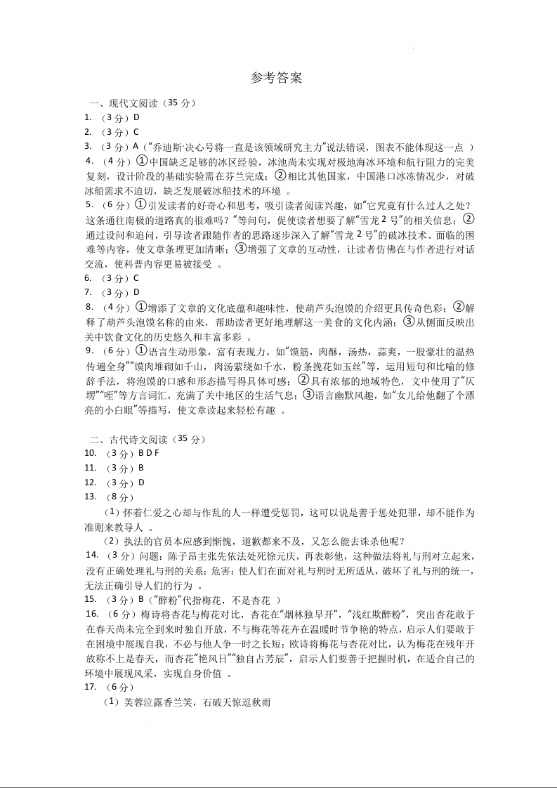 吉林省吉林地区2025届高中毕业年级第三次调研测试(三模)语文答案