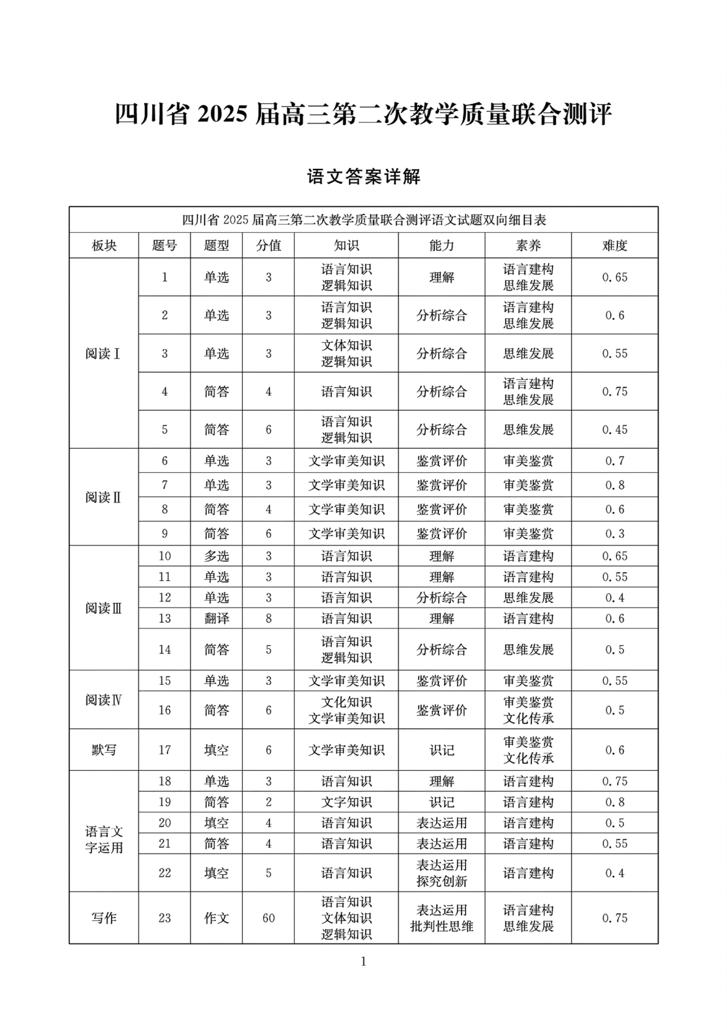 四川省大数据联考2025届高三第二次教学质量联合测评语文答案