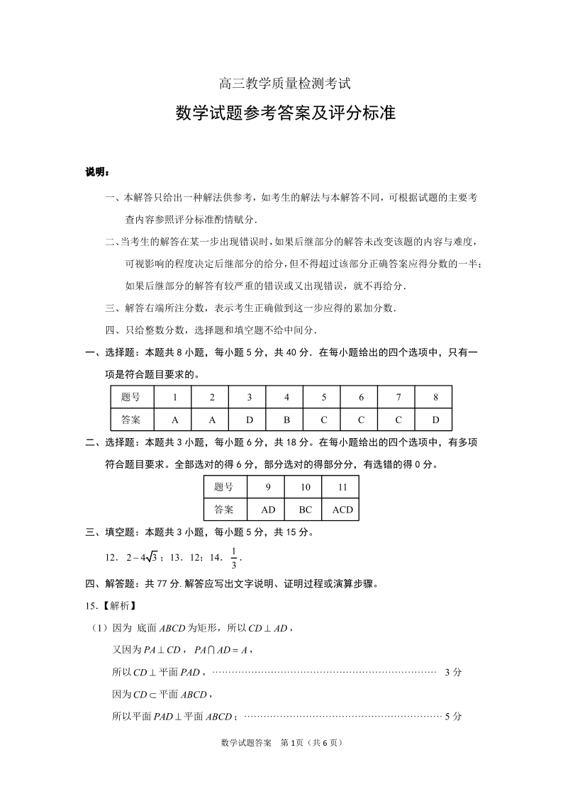 山东省区域高中2025届高三年级联合质量检测(九五联考)数学答案