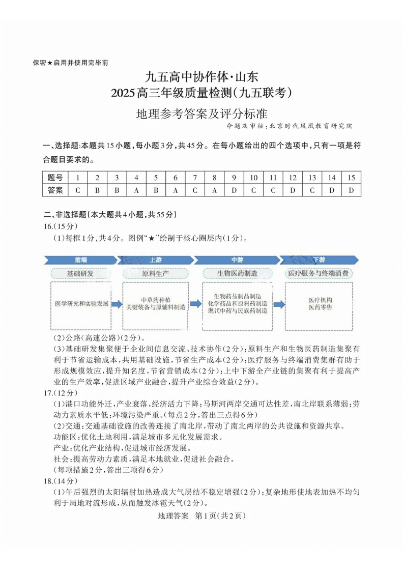 山东省区域高中2025届高三年级联合质量检测(九五联考)地理答案