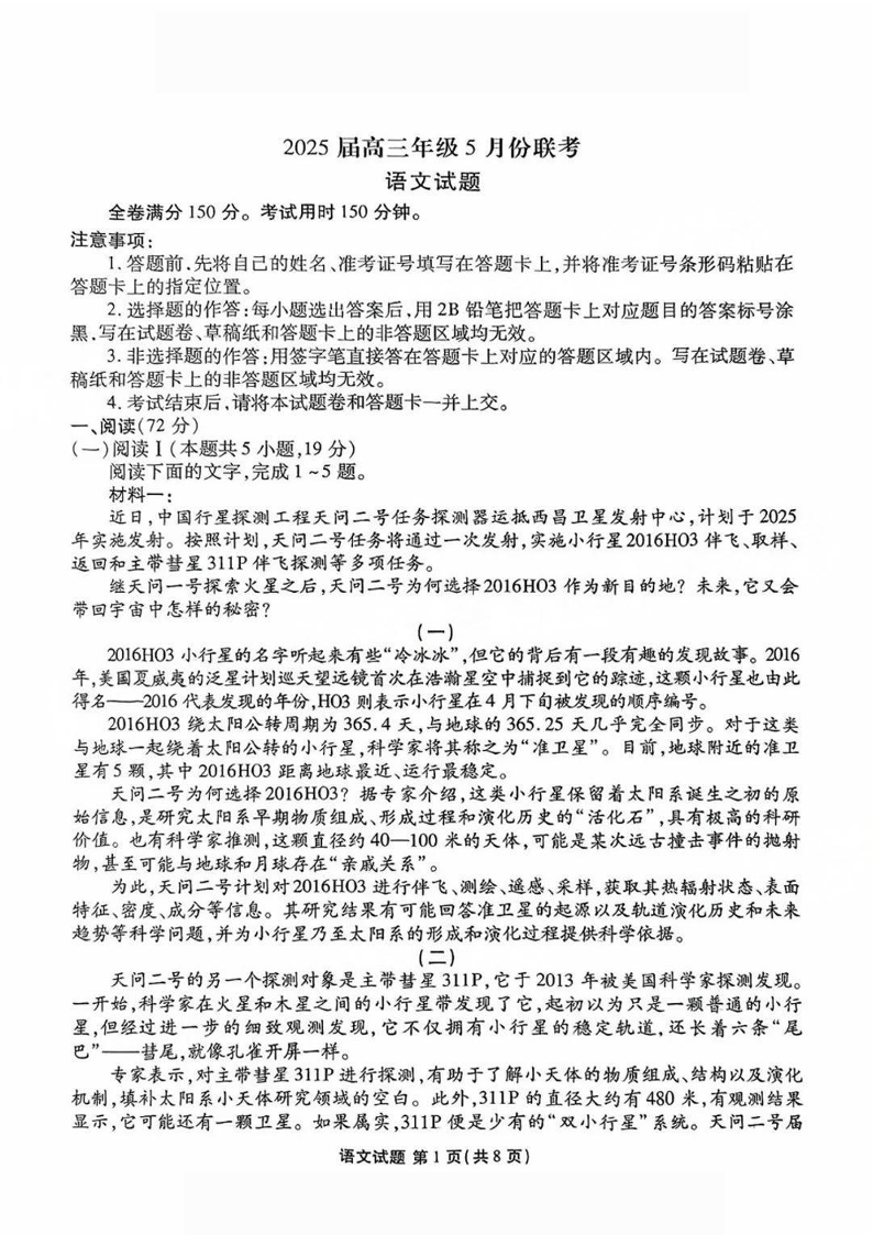 广东省衡水金卷2025届高三年级5月联考语文+答案