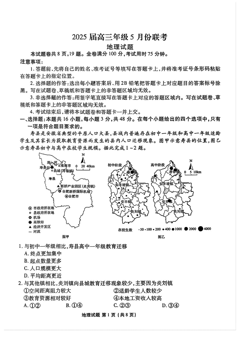 广东省衡水金卷2025届高三年级5月联考地理+答案