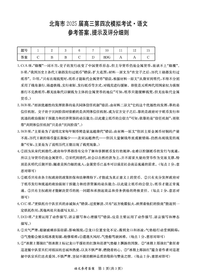 广西壮族自治区北海市2025届高三5月第四次模拟预测语文答案