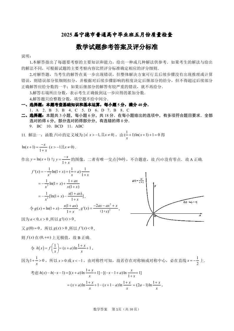 福建省宁德市2025届普通高中毕业班五月份质量检测数学答案