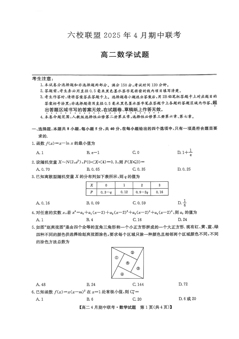河北省保定市六校联盟2024-2025学年下学期4月高二期中考试数学+答案