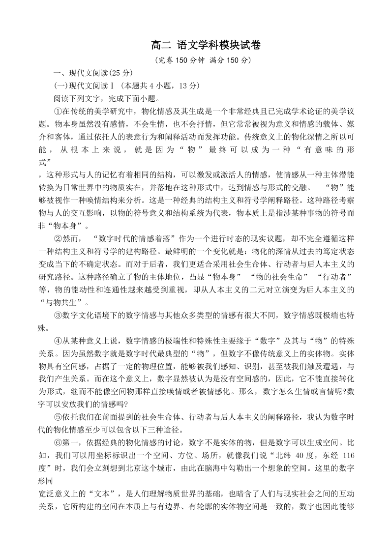 福建省福州第一中学2024-2025学年下学期高二期中考试语文+答案