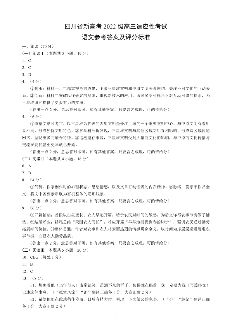 四川省蓉城名校联盟新高考2022级高三适应性考试语文答案