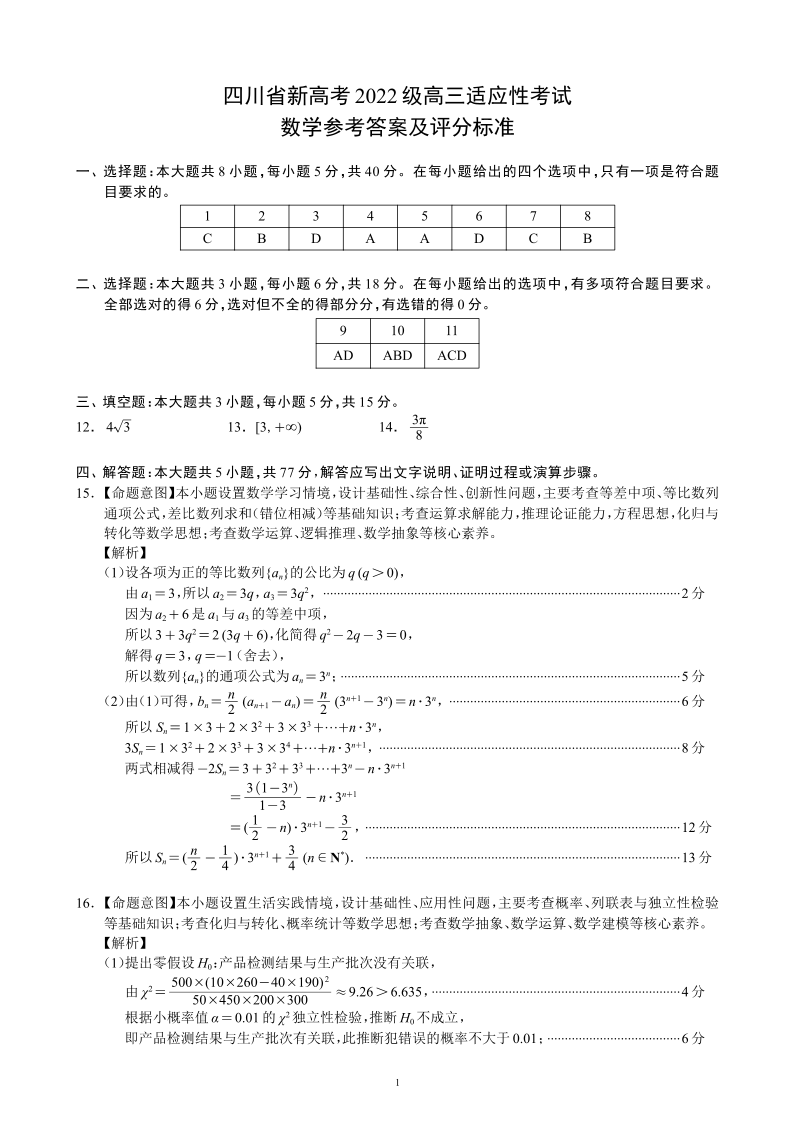四川省蓉城名校联盟新高考2022级高三适应性考试数学答案
