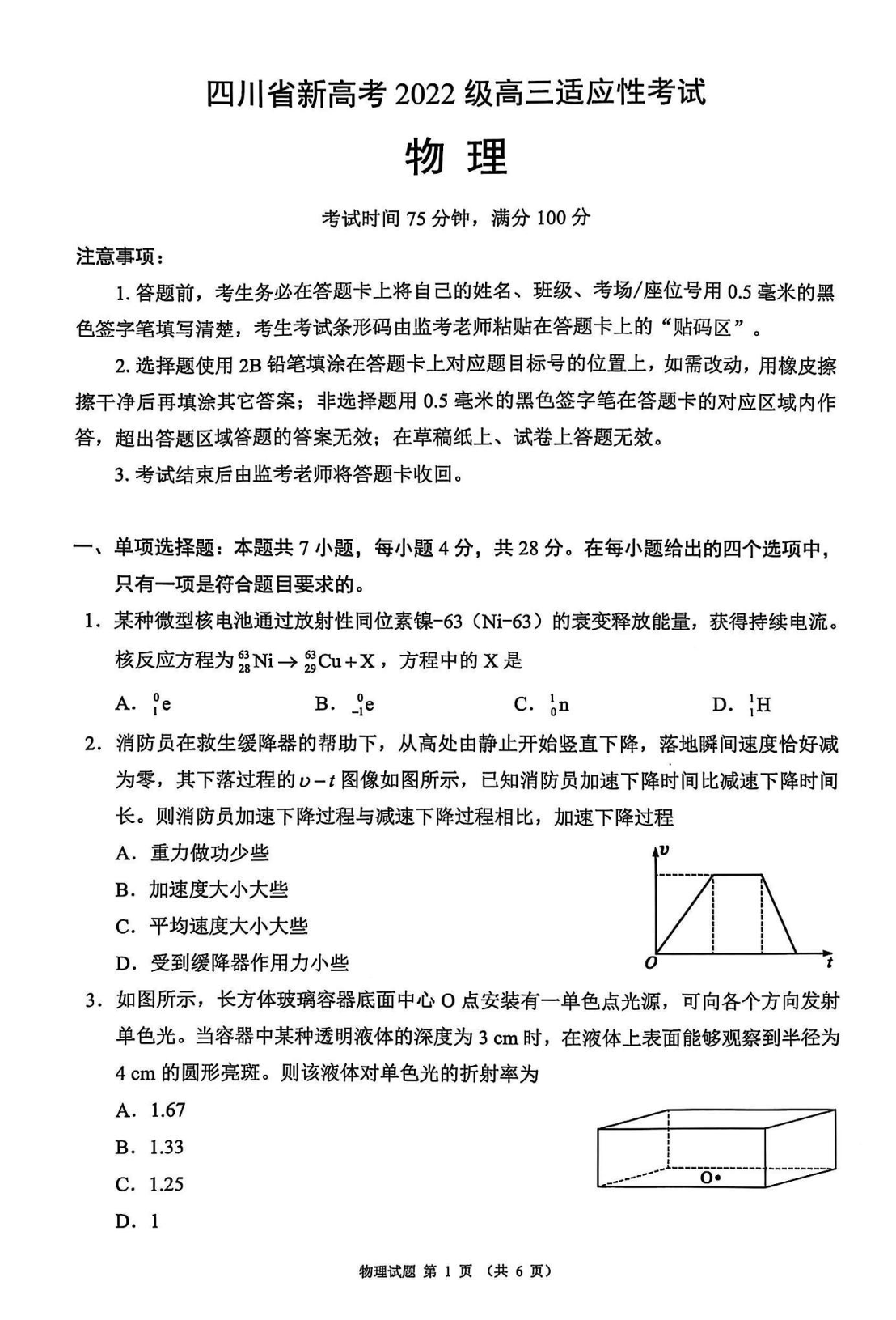 四川省蓉城名校联盟新高考2022级高三适应性考试物理