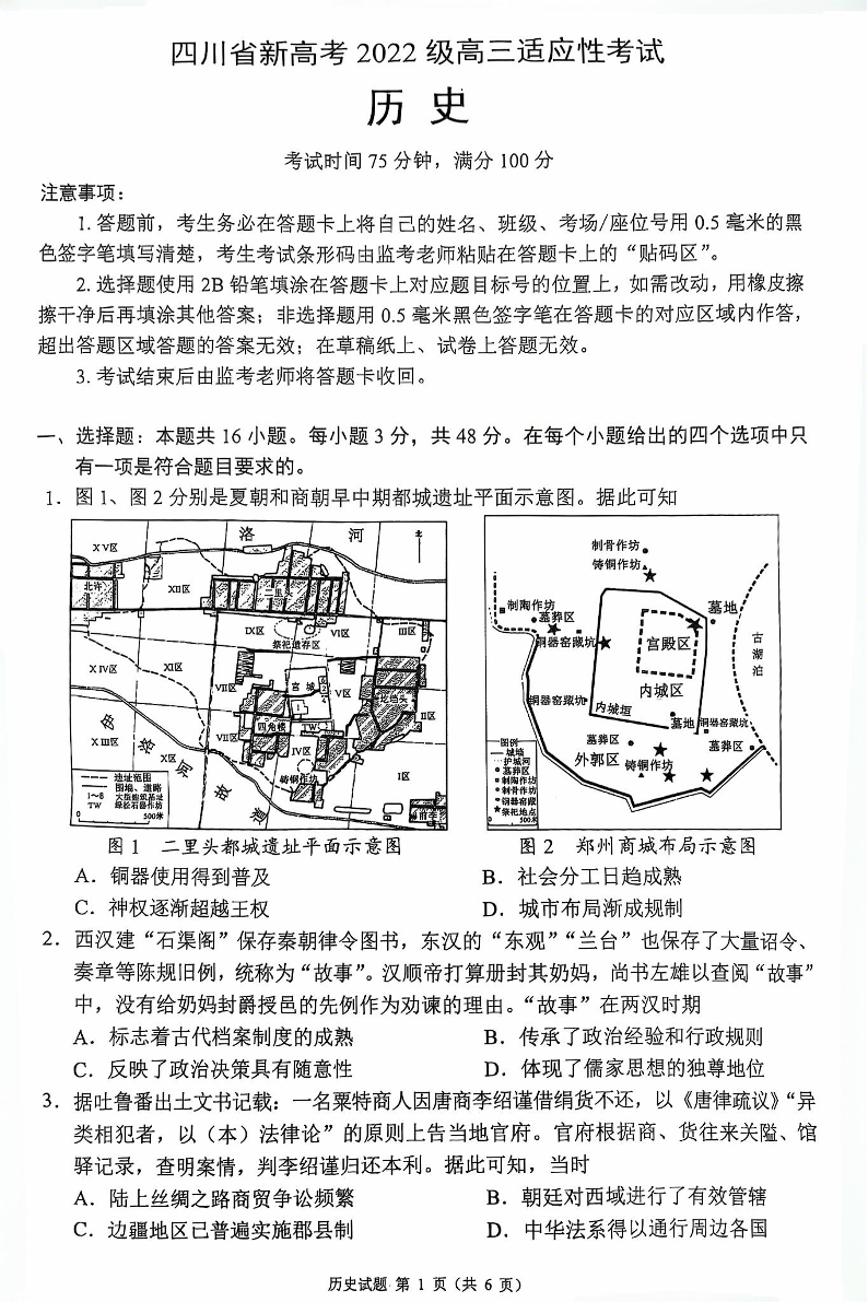 四川省蓉城名校联盟新高考2022级高三适应性考试历史