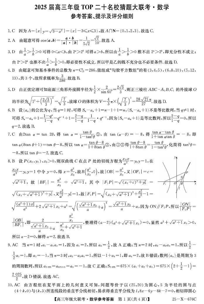 河南省TOP二十名校2025届高三猜题大联考数学答案