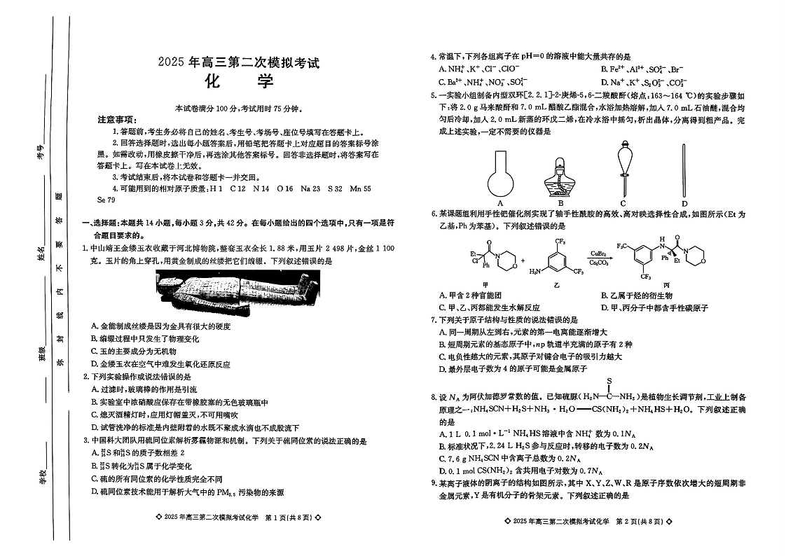 河北省邢台市五县一中2025届高三下学期第二次模拟考试化学+答案