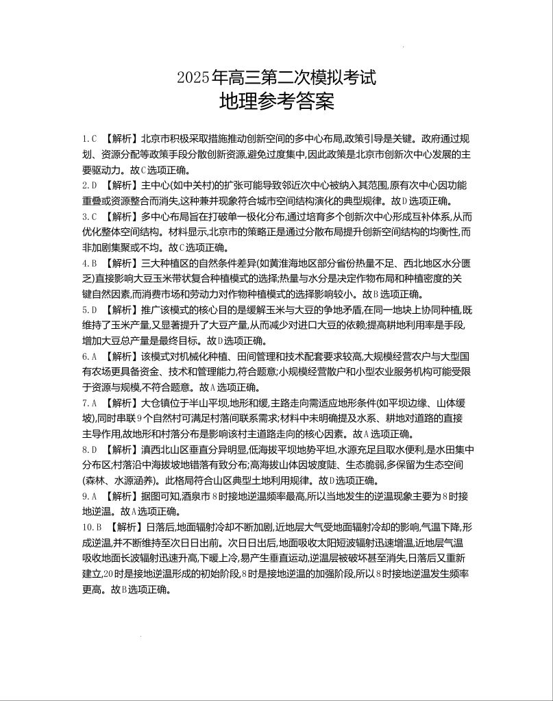 河北省保定市2025届高三第二次模拟考试地理答案