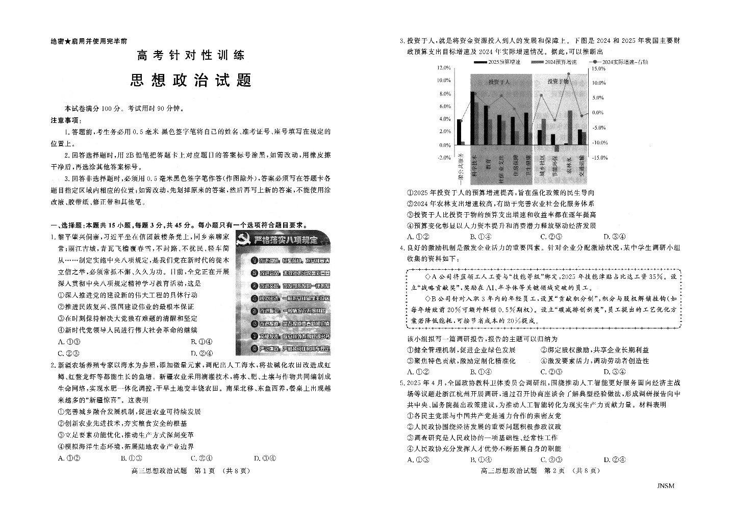 山东省济南市2025届高三5月高三针对性训练(三模)政治