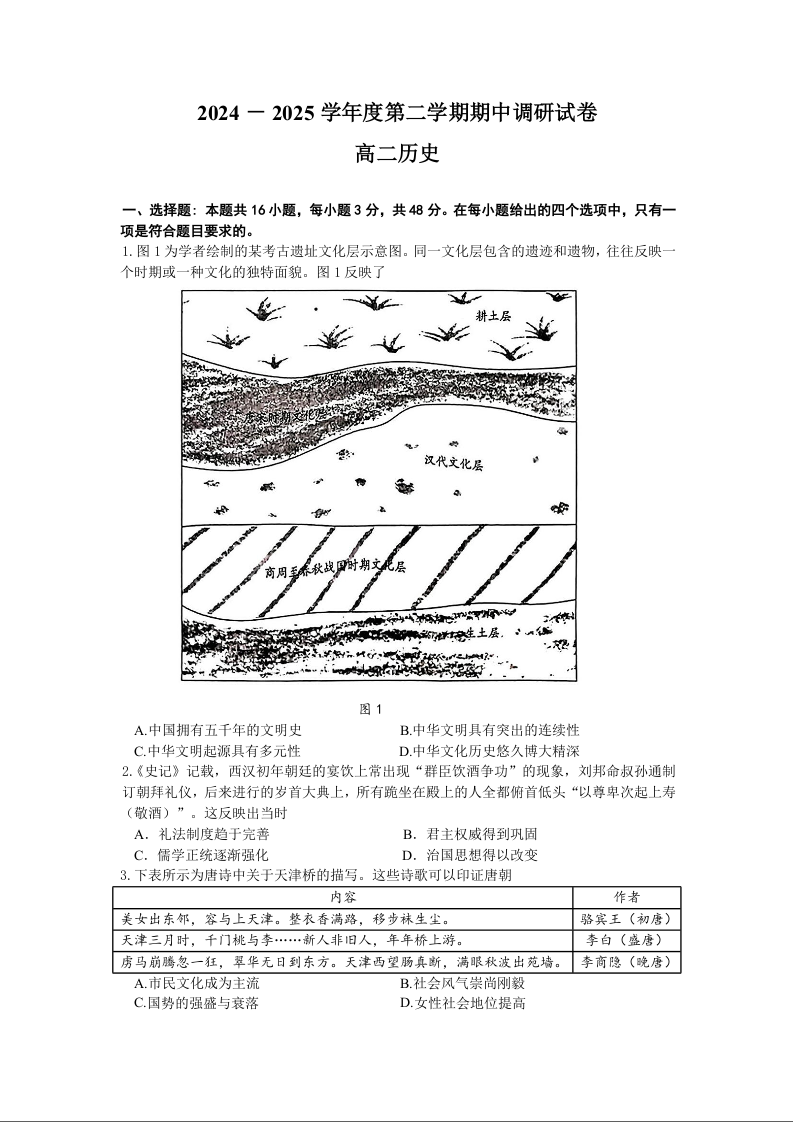 江苏省扬州市邗江区2024-2025学年下学期高二期中考试历史