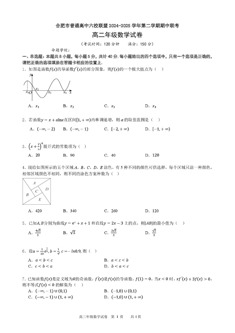 安徽省合肥市六校联盟2024-2025学年下学期4月高二期中考试数学+答案