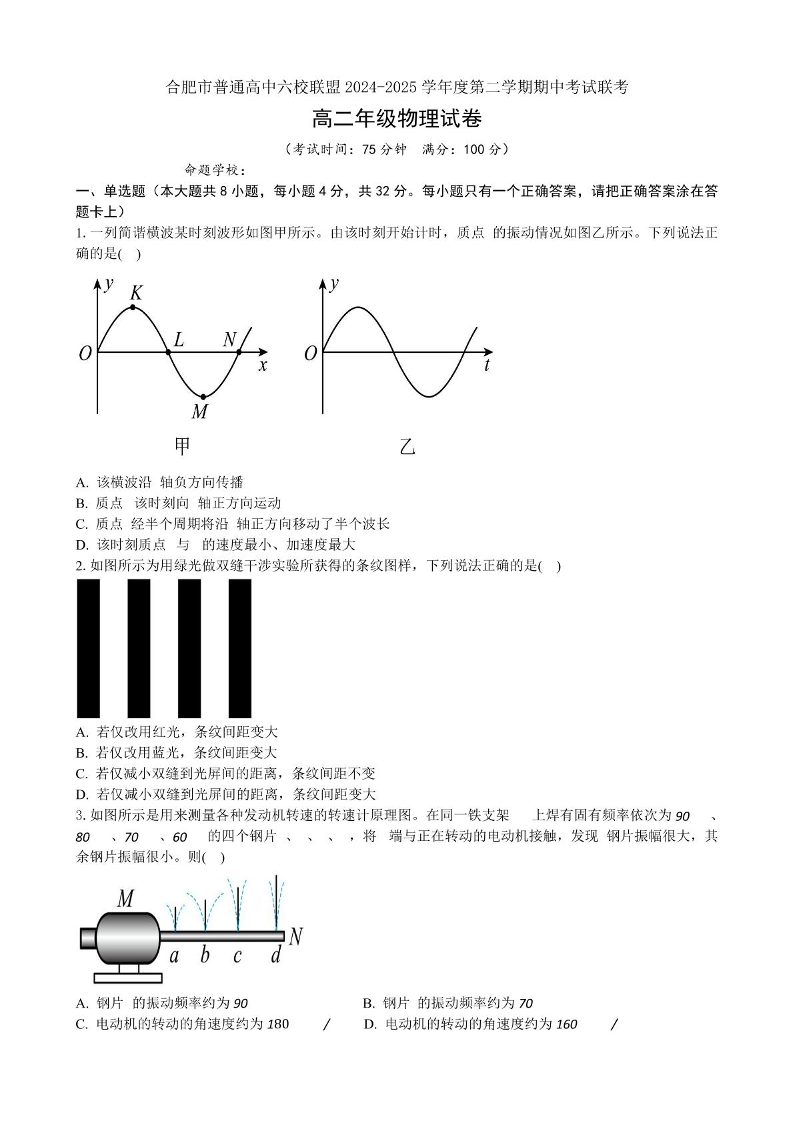 安徽省合肥市六校联盟2024-2025学年下学期4月高二期中考试物理+答案