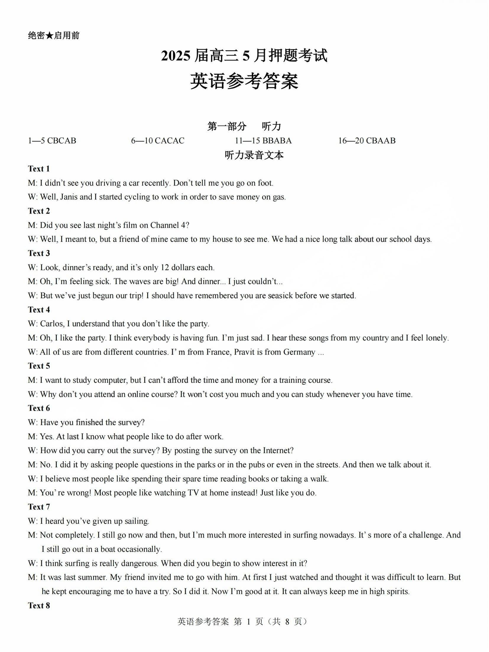 山西省太原市2025届高三5月押题考试(三模)英语答案