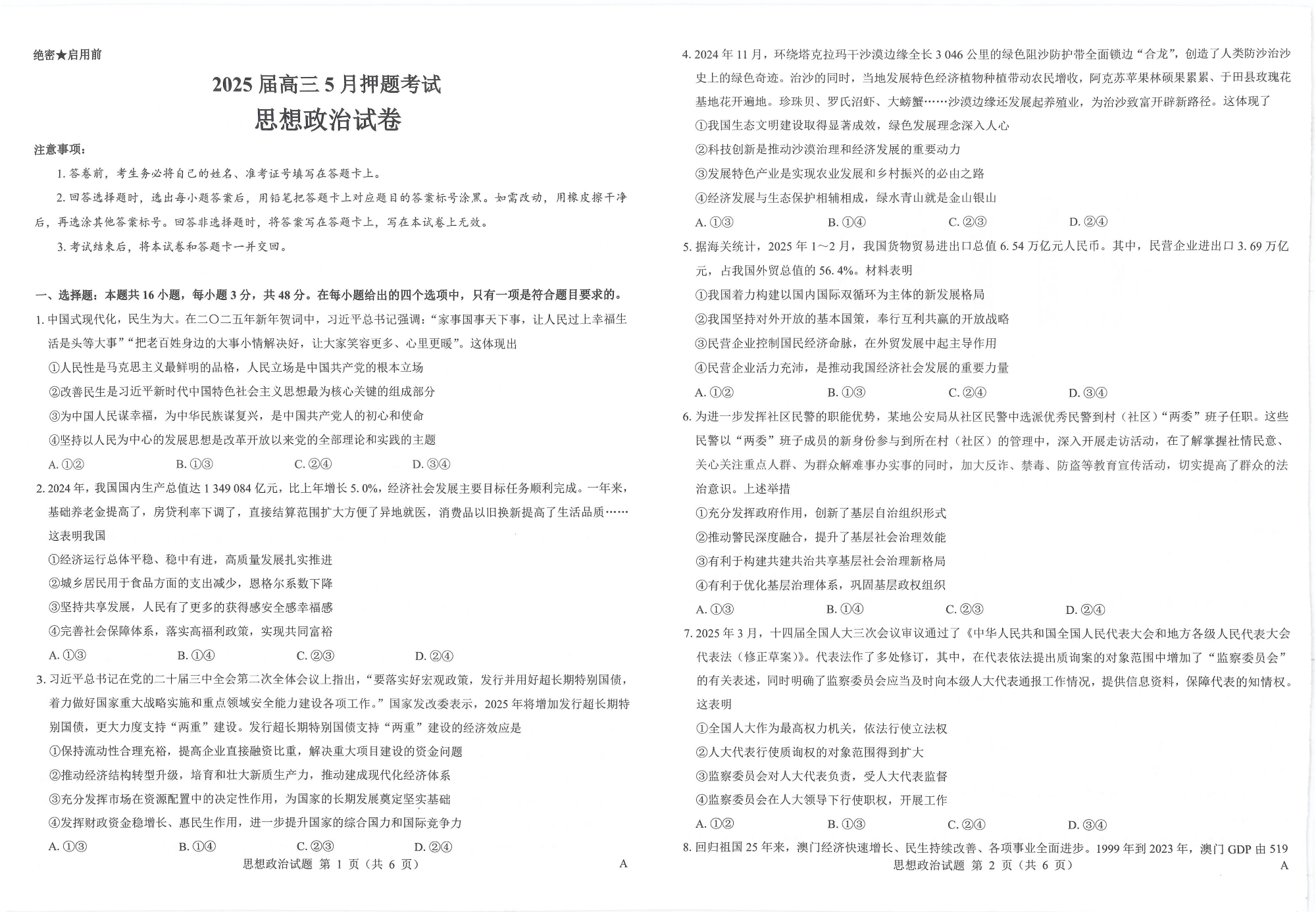 山西省太原市2025届高三5月押题考试(三模)政治