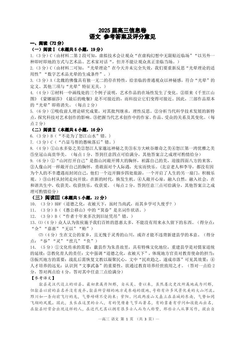 江西省南昌市2025届高三信息卷(三模)语文答案