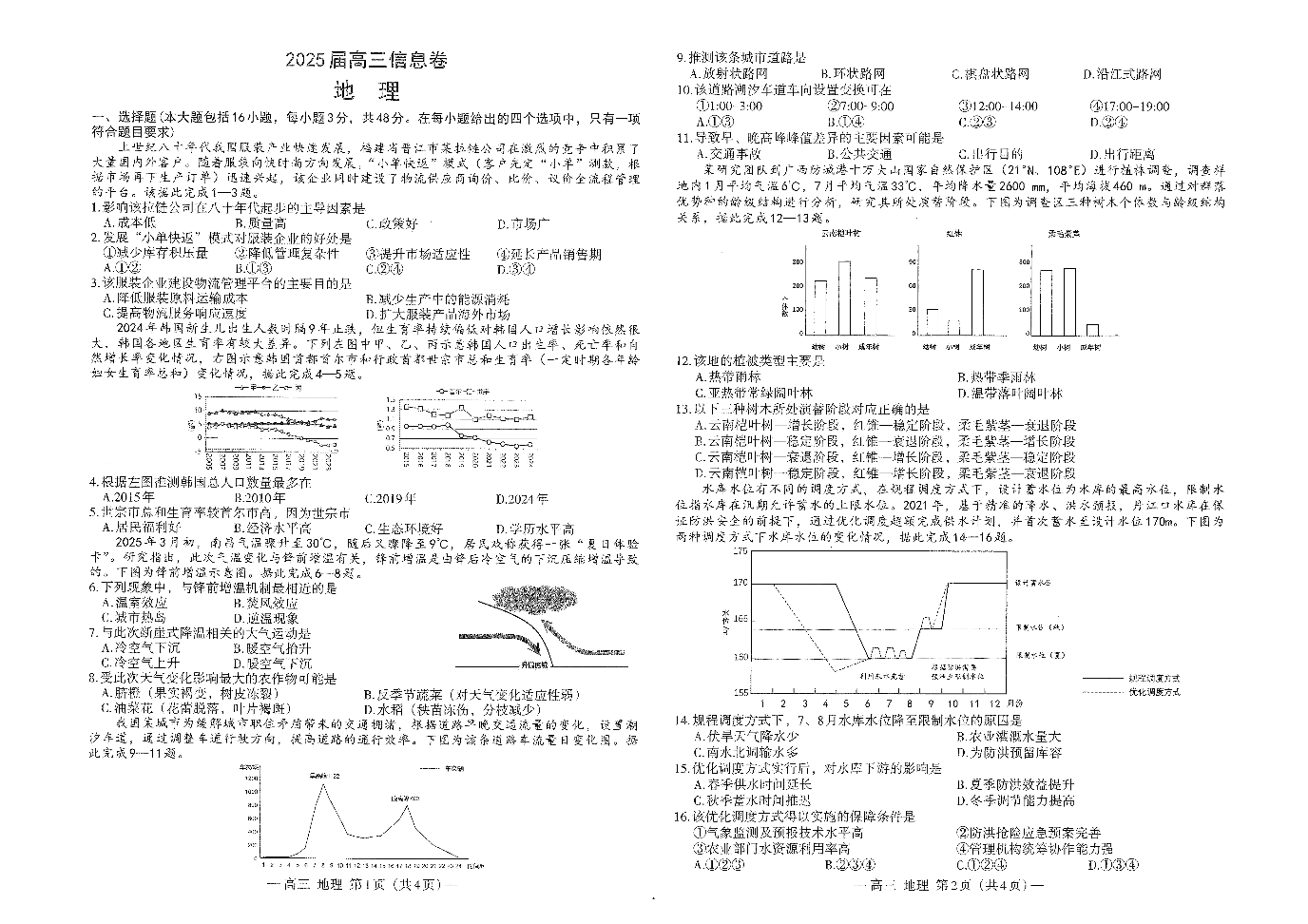 江西省南昌市2025届高三信息卷(三模)地理+答案