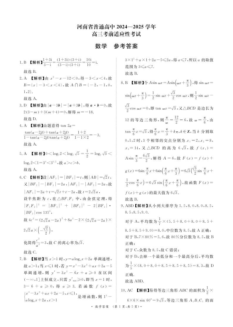 河南省区域高中2025届高三5月大联考考前适应性考试数学答案