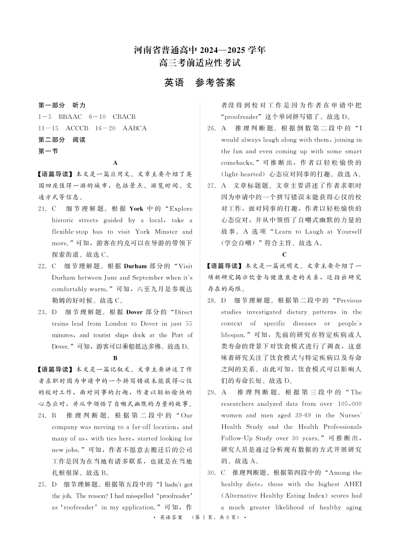 河南省区域高中2025届高三5月大联考考前适应性考试英语答案