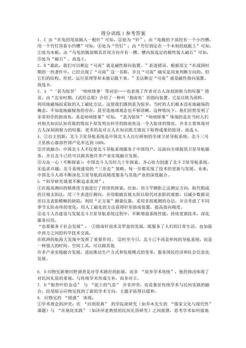 黑龙江省大庆实验中学二部2025届高三得分训练(一)语文答案