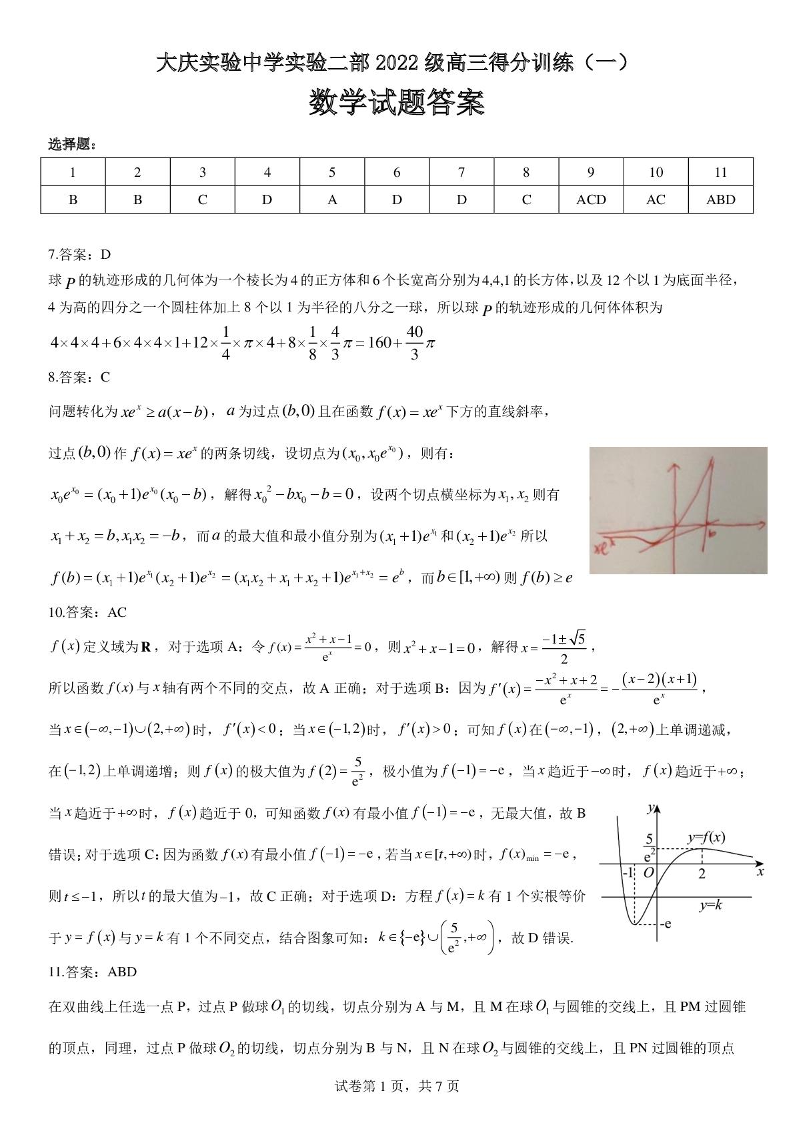 黑龙江省大庆实验中学二部2025届高三得分训练(一)数学答案