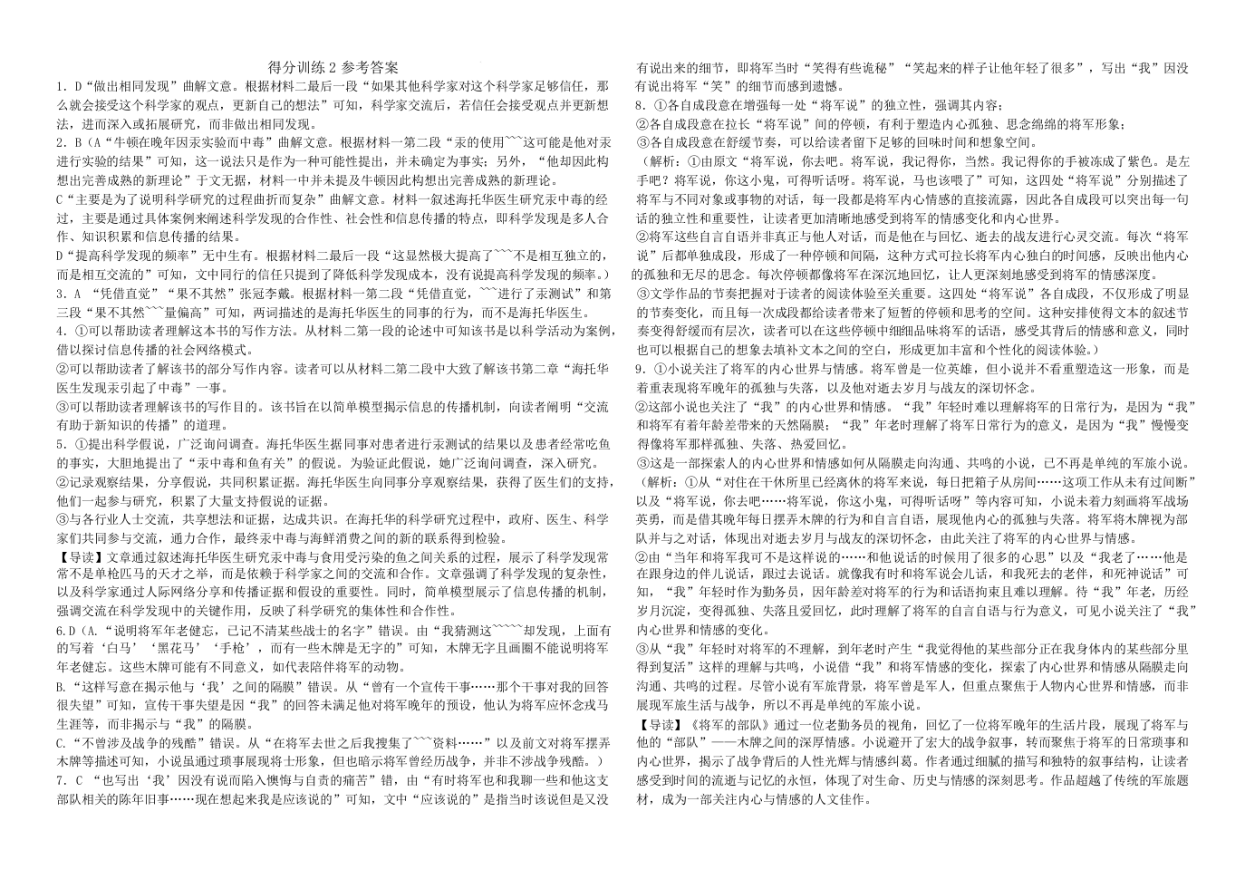 黑龙江省大庆实验中学二部2025届高三得分训练(二)语文答案