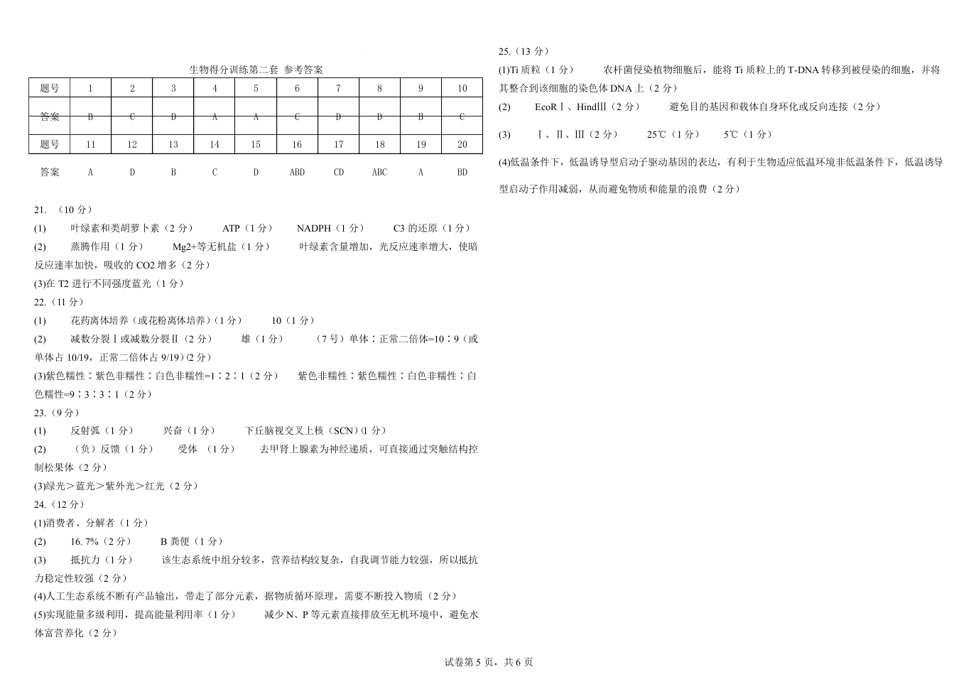 黑龙江省大庆实验中学二部2025届高三得分训练(二)生物答案