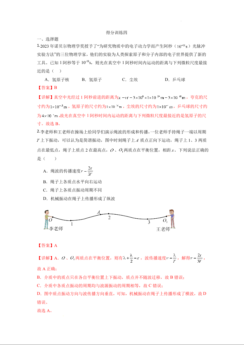 黑龙江省大庆实验中学二部2025届高三得分训练(四)物理答案