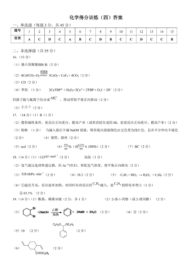 黑龙江省大庆实验中学二部2025届高三得分训练(四)化学答案