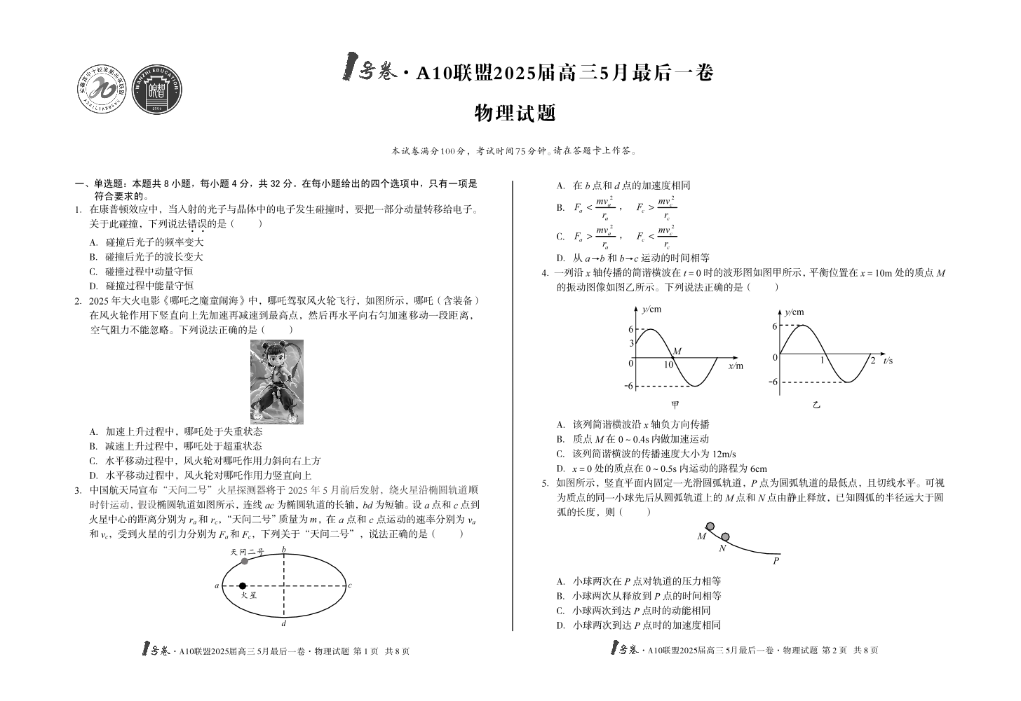 安徽省1号卷·A10联盟2025届高三5月最后一卷物理