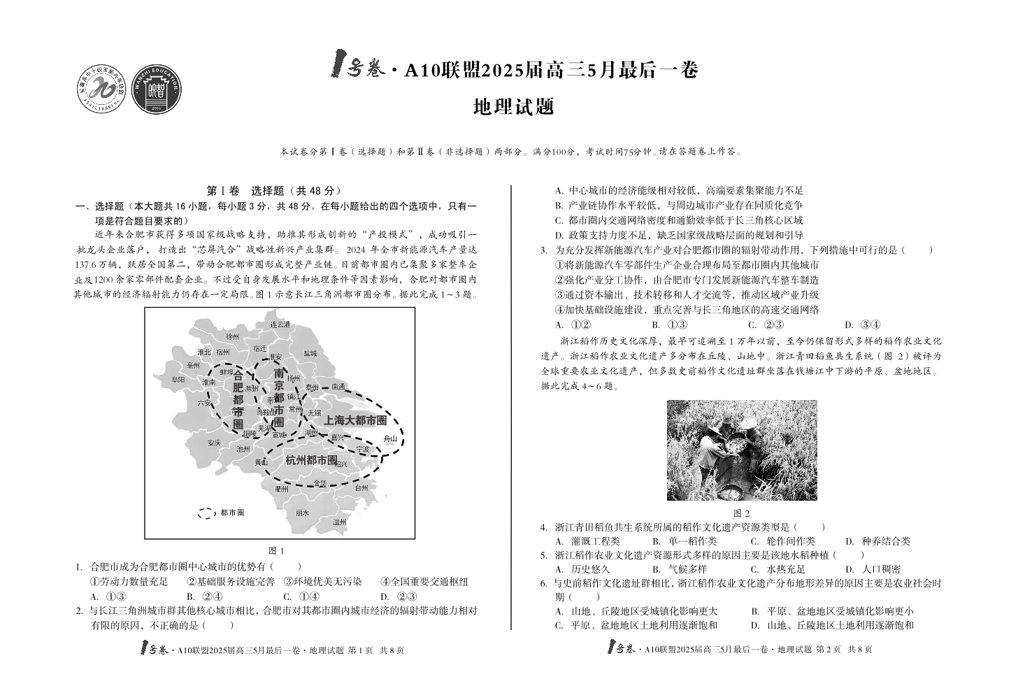 安徽省1号卷·A10联盟2025届高三5月最后一卷地理