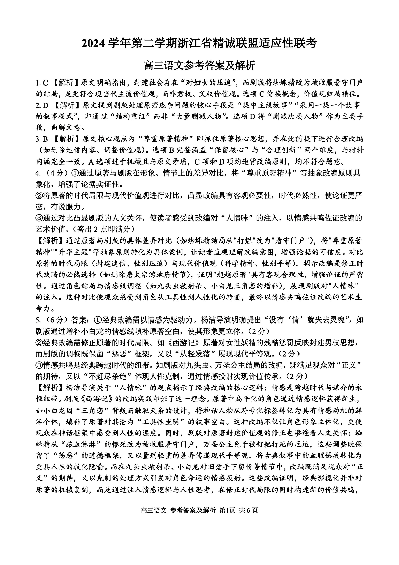 浙江省精诚联盟2025届高三下学期5月适应性联考语文答案