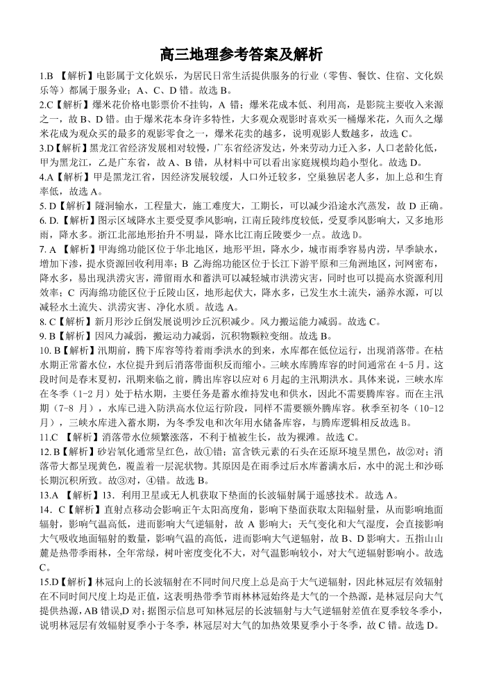 浙江省精诚联盟2025届高三下学期5月适应性联考地理答案