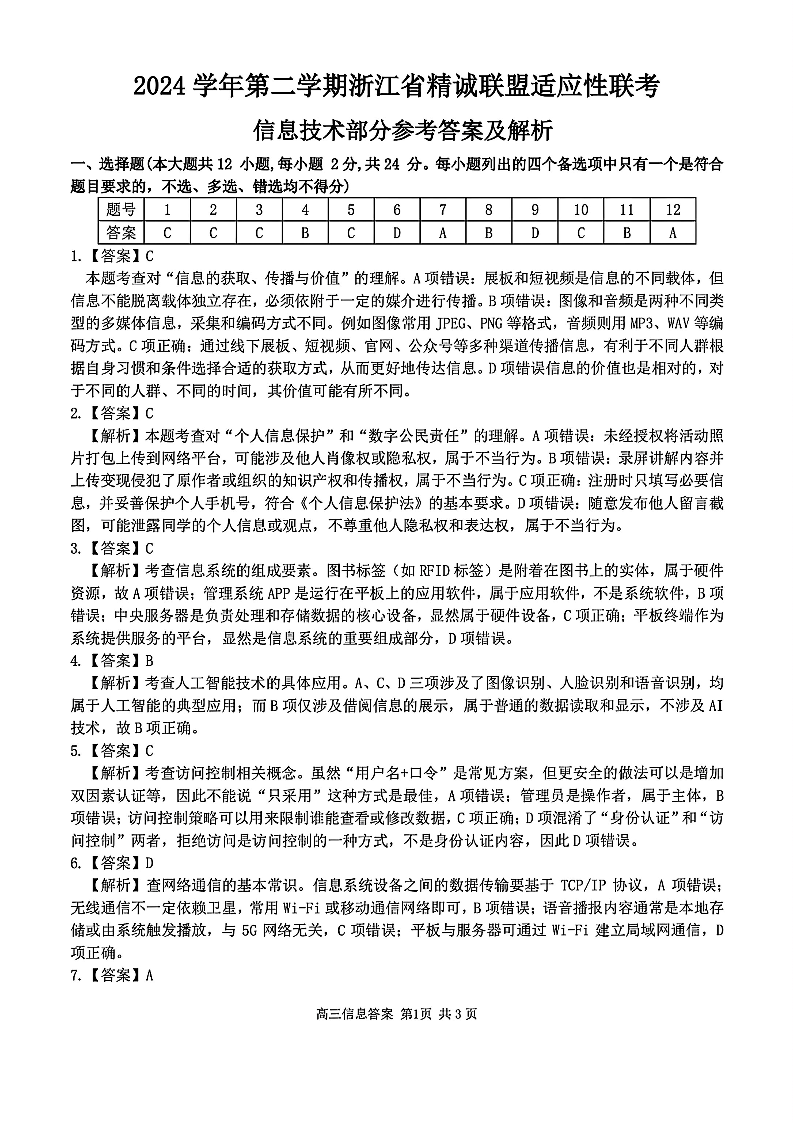 浙江省精诚联盟2025届高三下学期5月适应性联考技术答案