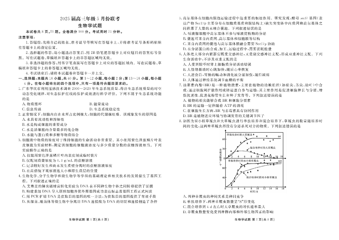 衡水金卷2025届高三5月份联考生物+答案
