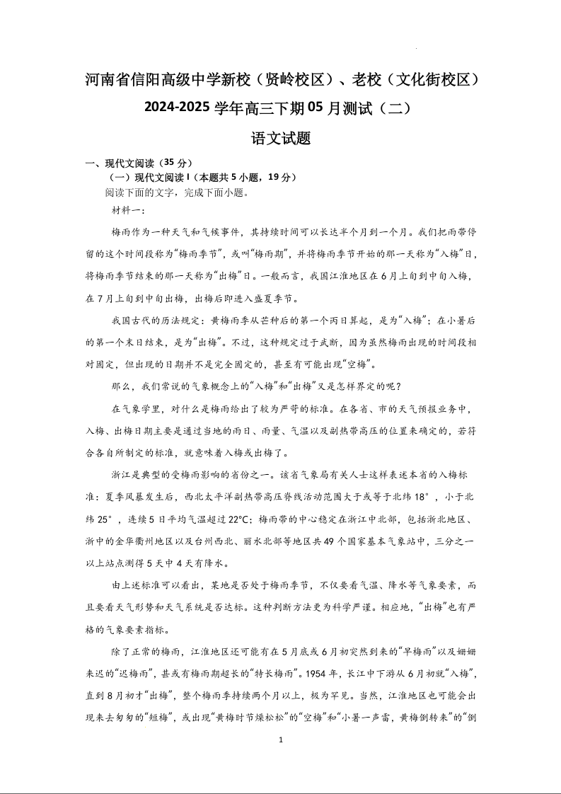 河南省信阳高级中学2025届高三下学期5月测试(二)语文